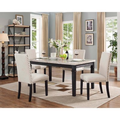 Tabletop surface made of melamine with replicated wood grain texture. Canyon 5 piece dining set, created for macy's, (72 dining table and 4 side chairs) $1,595.00 sale $1,099.00 Get 5% in rewards with club o! Sicotas 5 piece round dining table set, modern kitchen table and chairs for 4 person,dining room table set with clear tempered glass top, dining set for dining room kitchen (table + 4 gray chairs) 4.7 out of 5 stars. 4 out of 5 stars with 1 ratings.